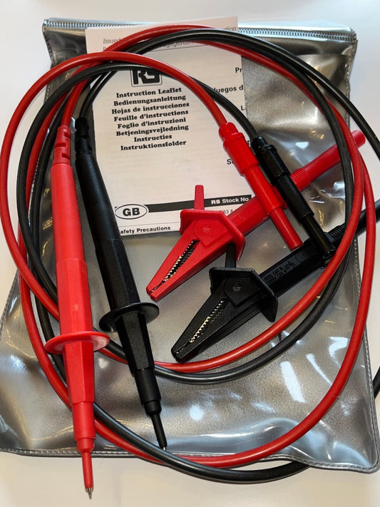 RS PRO QUALITY SILICONE FUSED TEST LEAD KIT 4MM SHROUDED PLUG MADE IN UK ad1*6