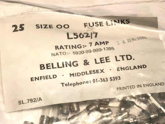 15MM GLASS 7A FUSE VINTAGE BELLING-LEE L562-7A 10 PIECES bda10b