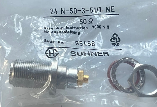 SUHNER N TYPE BULKHEAD FEMALE FOR SMALL COAX & .141 SEMI RIGID fcb25.43