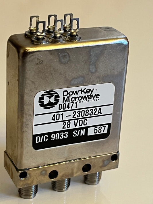DOWKEY 401-230832A RF SMA FAIL SAFE COAX SWITCH 18GHz 28Vdc SPDT AD2N32