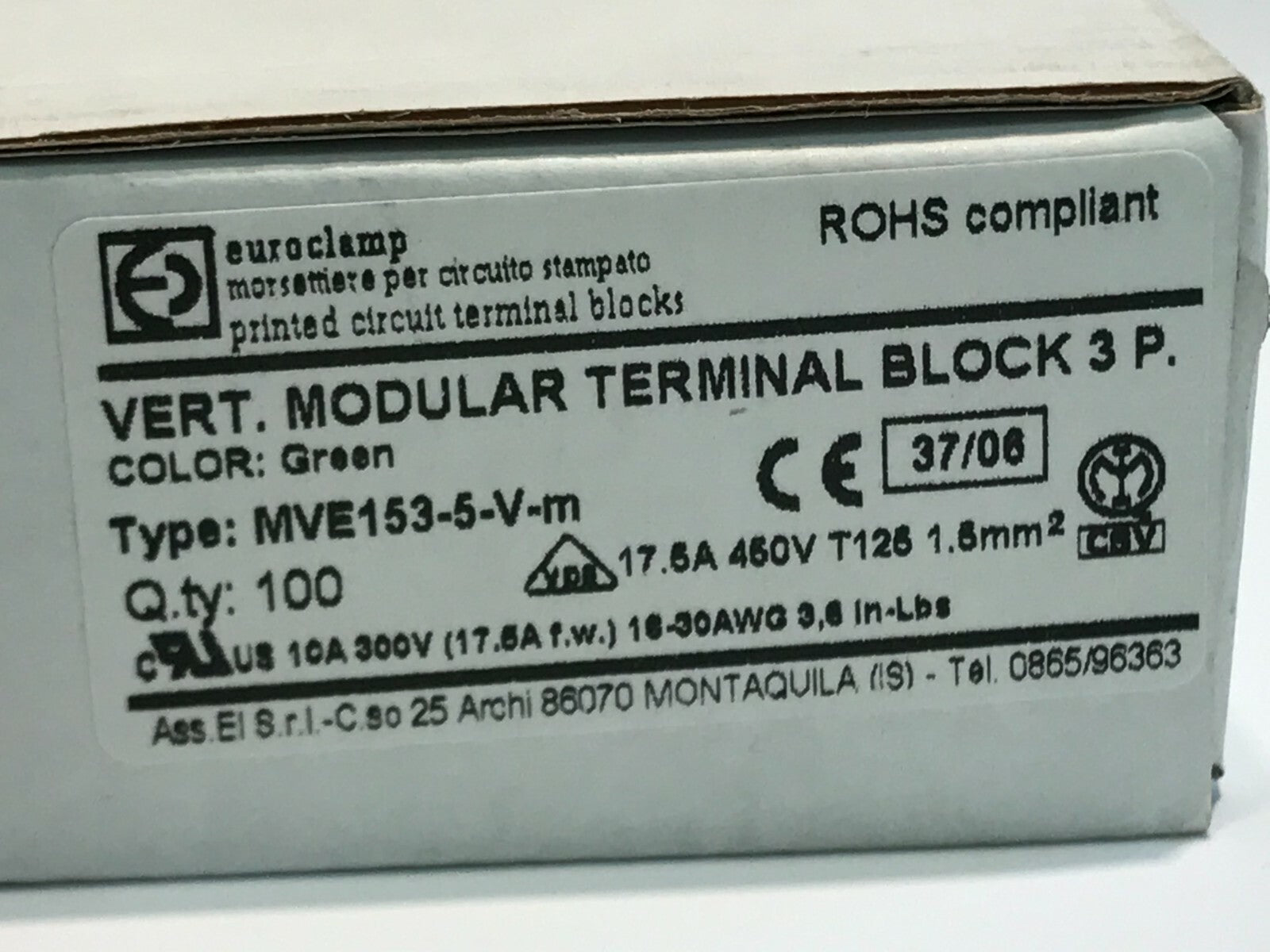 3 WAY PCB TERMINAL BLOCK CONNECTOR 5mm PITCH 17.5A BEST QUALITY EUROCLAMP blb148