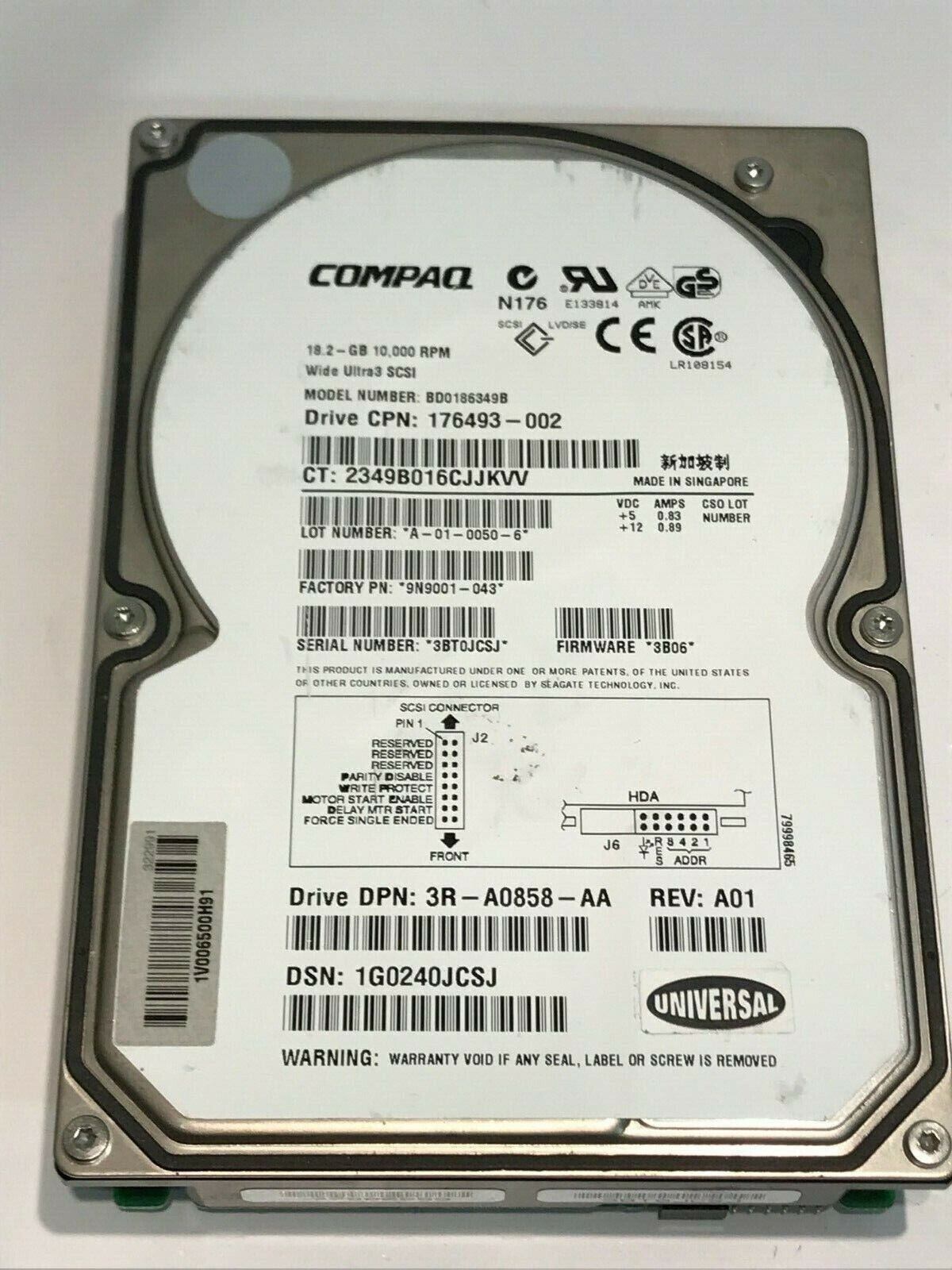 COMPAQ BD0186349B 18.2GB SCSI 3 HARD DRIVE 176493-002 3B06 9N9001-043 aa5ge5