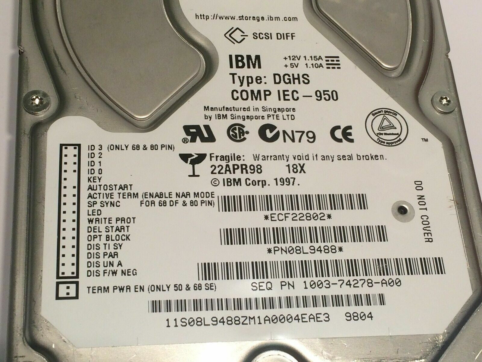 IBM PN08L9488 TYPE DGHS HARD DRIVE 18.2GB 68 PIN SCSI 08L9488 aa4cd8