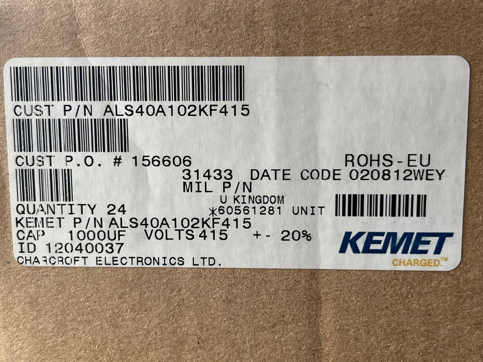 KEMET / BHC 1000UF 415V 105° INDUSTRIAL CAPACITOR ALS40A102KF415 NEW fce3n
