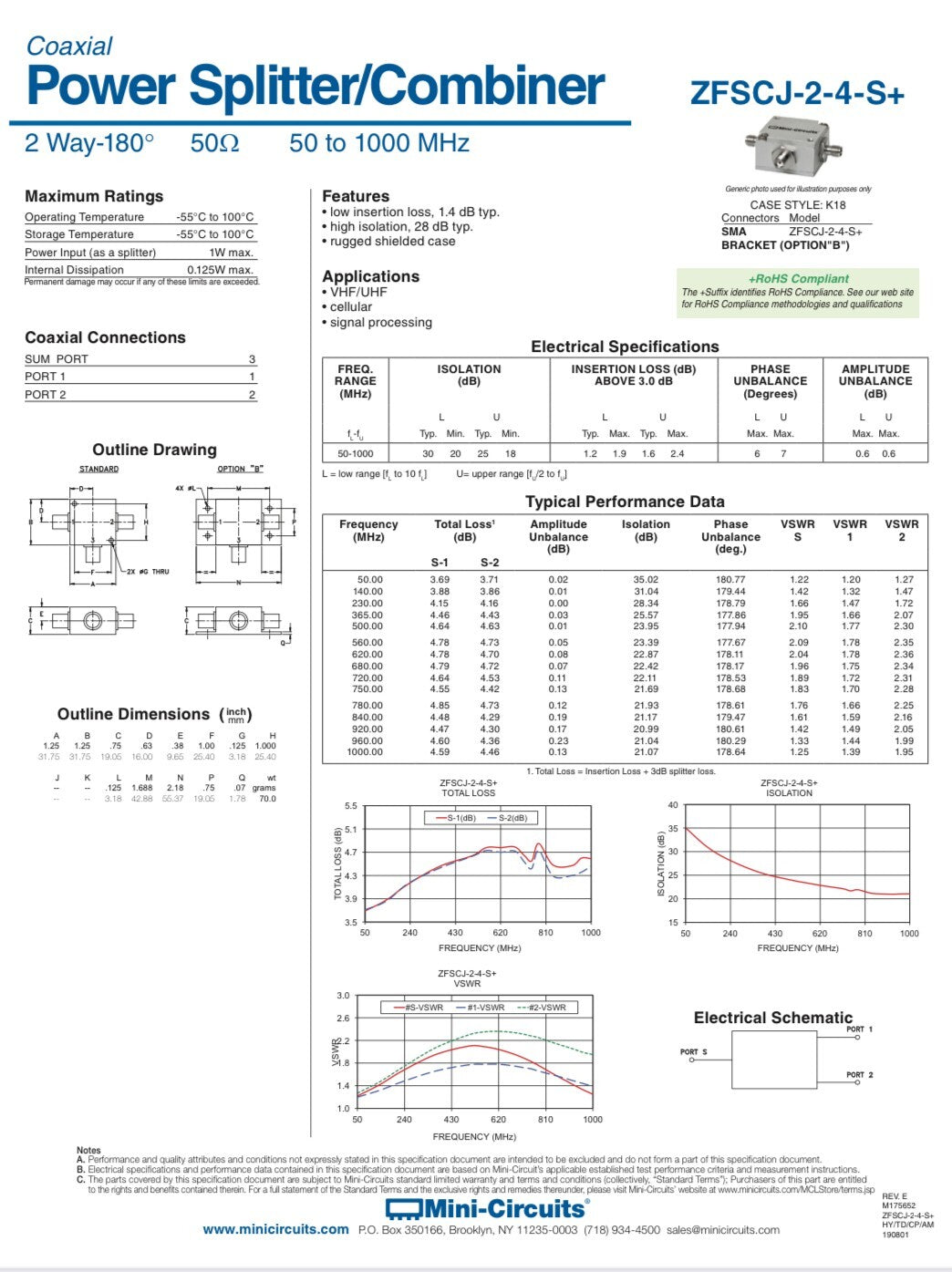 MINI-CIRCUITS ZFSCJ-2-4 SMA 2 WAY POWER SPLITTER / COMBINER 1000MHz AE1W41