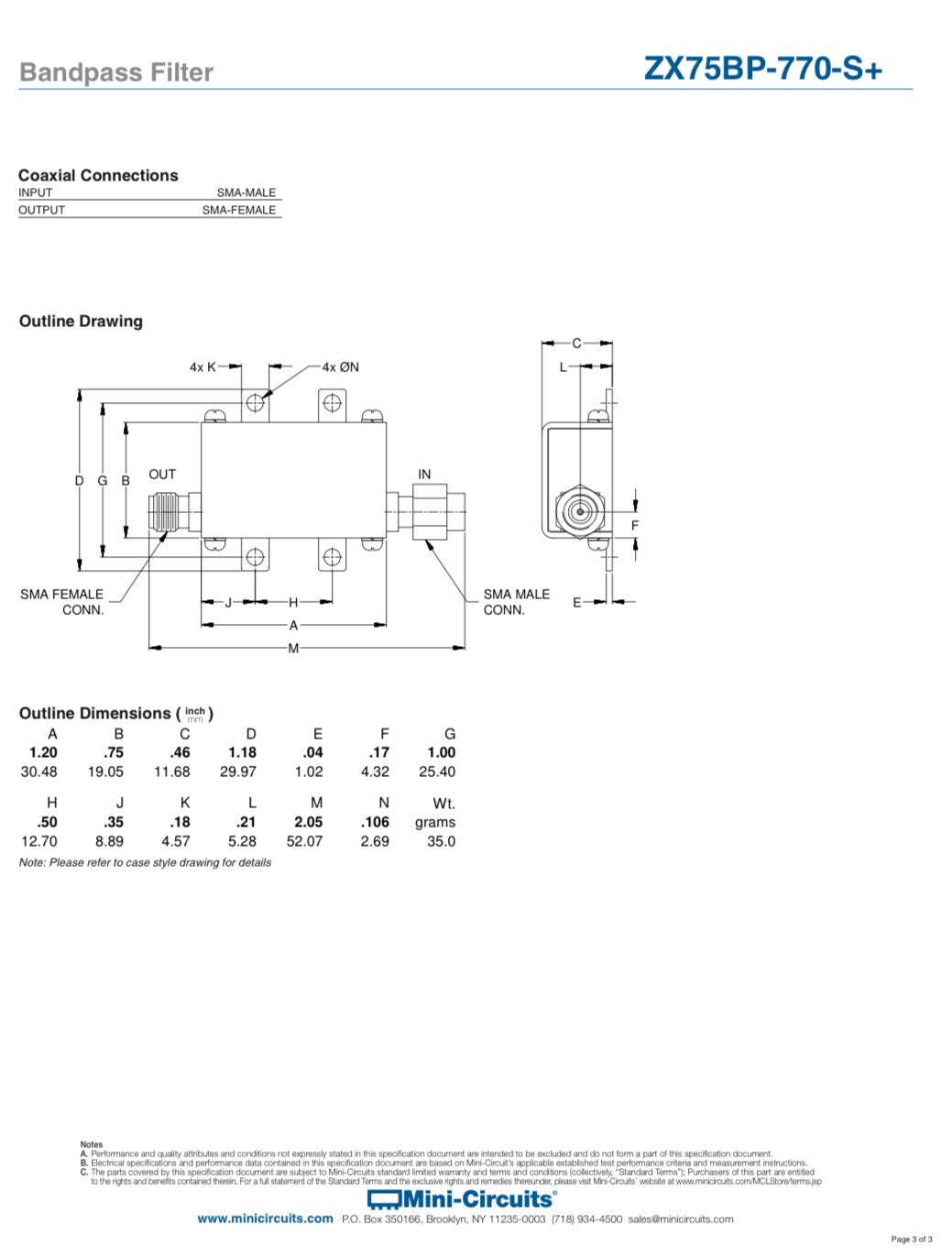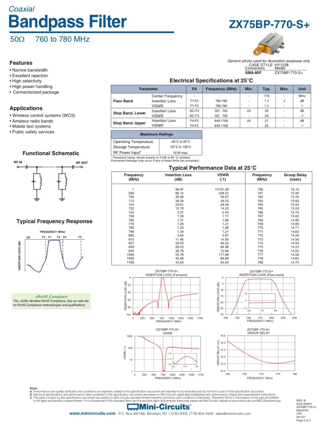 MINI-CIRCUITS ZX75BP-770-S+ CERAMIC BAND PASS FILTER 760 - 780MHz AE1W55