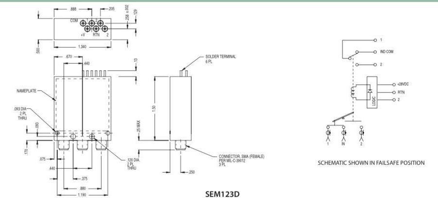 NARDA SEM123D RF SMA FAIL SAFE COAXIAL RELAY 18GHz 28Vdc SPDT AD2N28