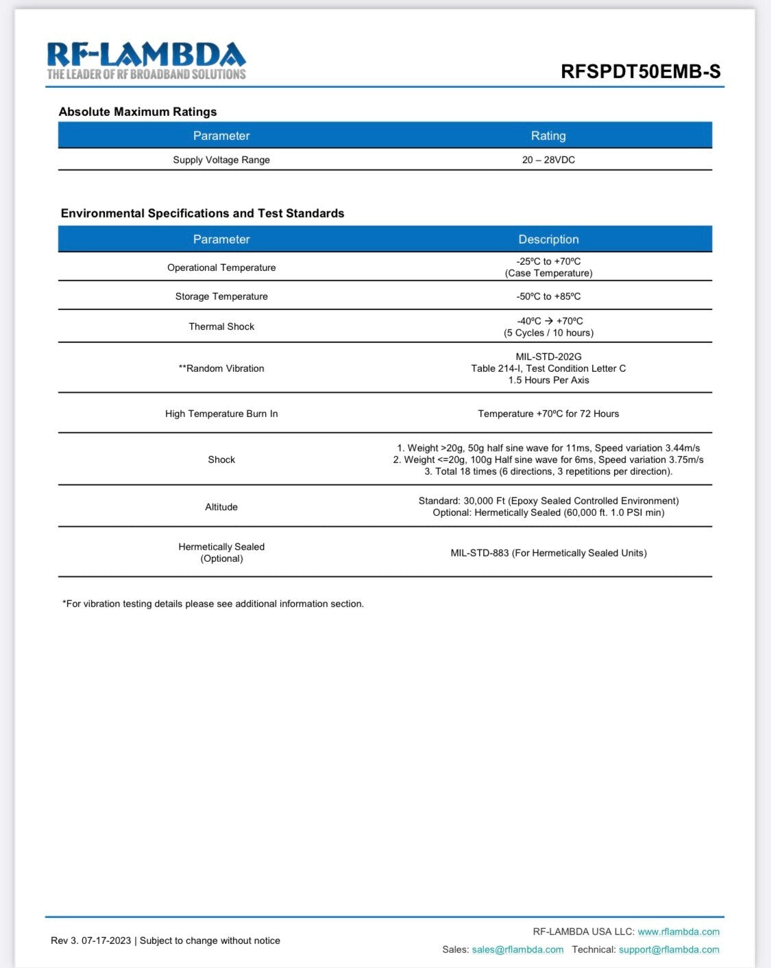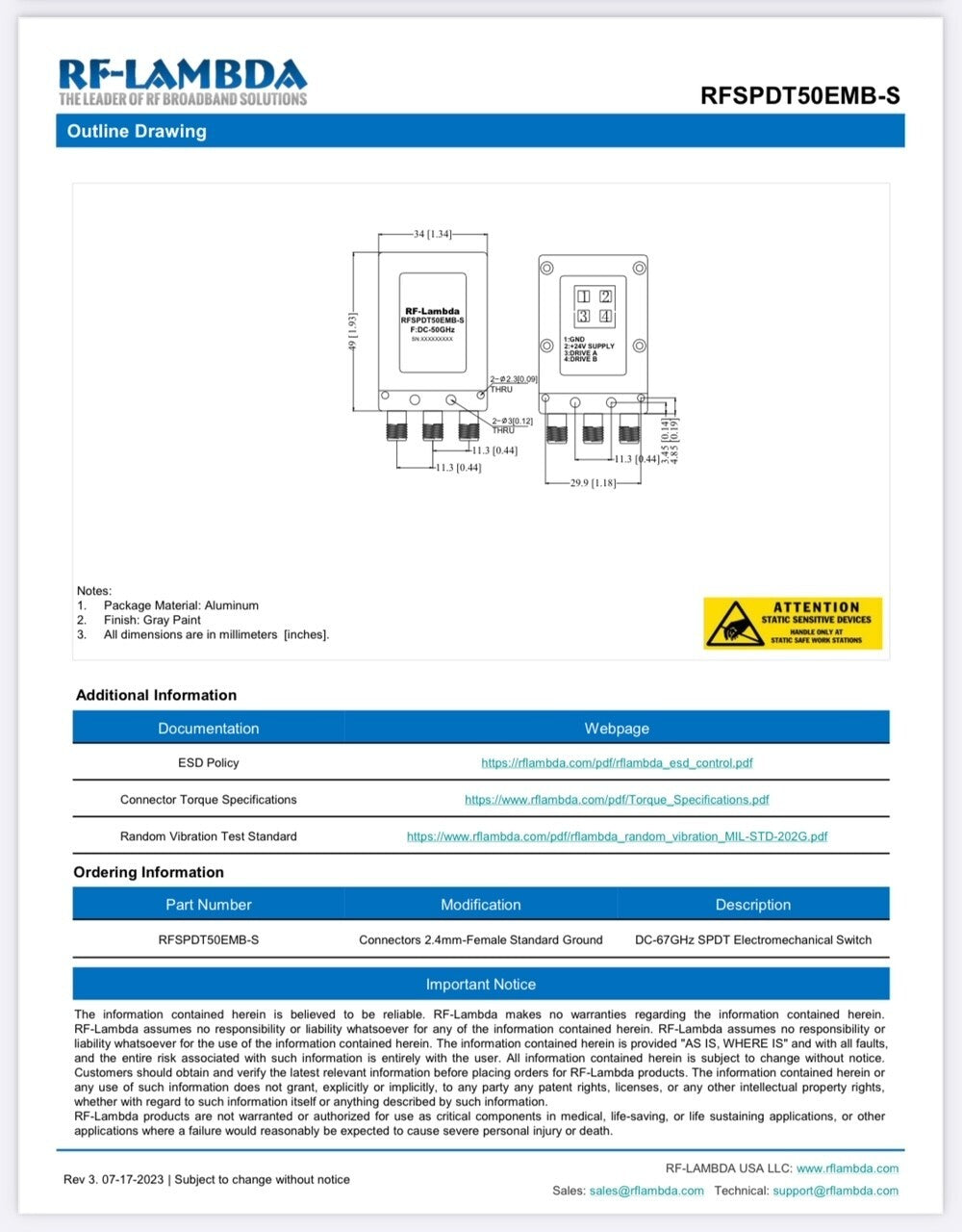 RF-LAMBDA RFSPDT50EMB-T COAXIAL RELAY SWITCH 2.4MM 50GHz 24Vdc SPDT AE1W8